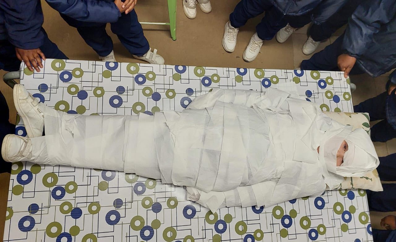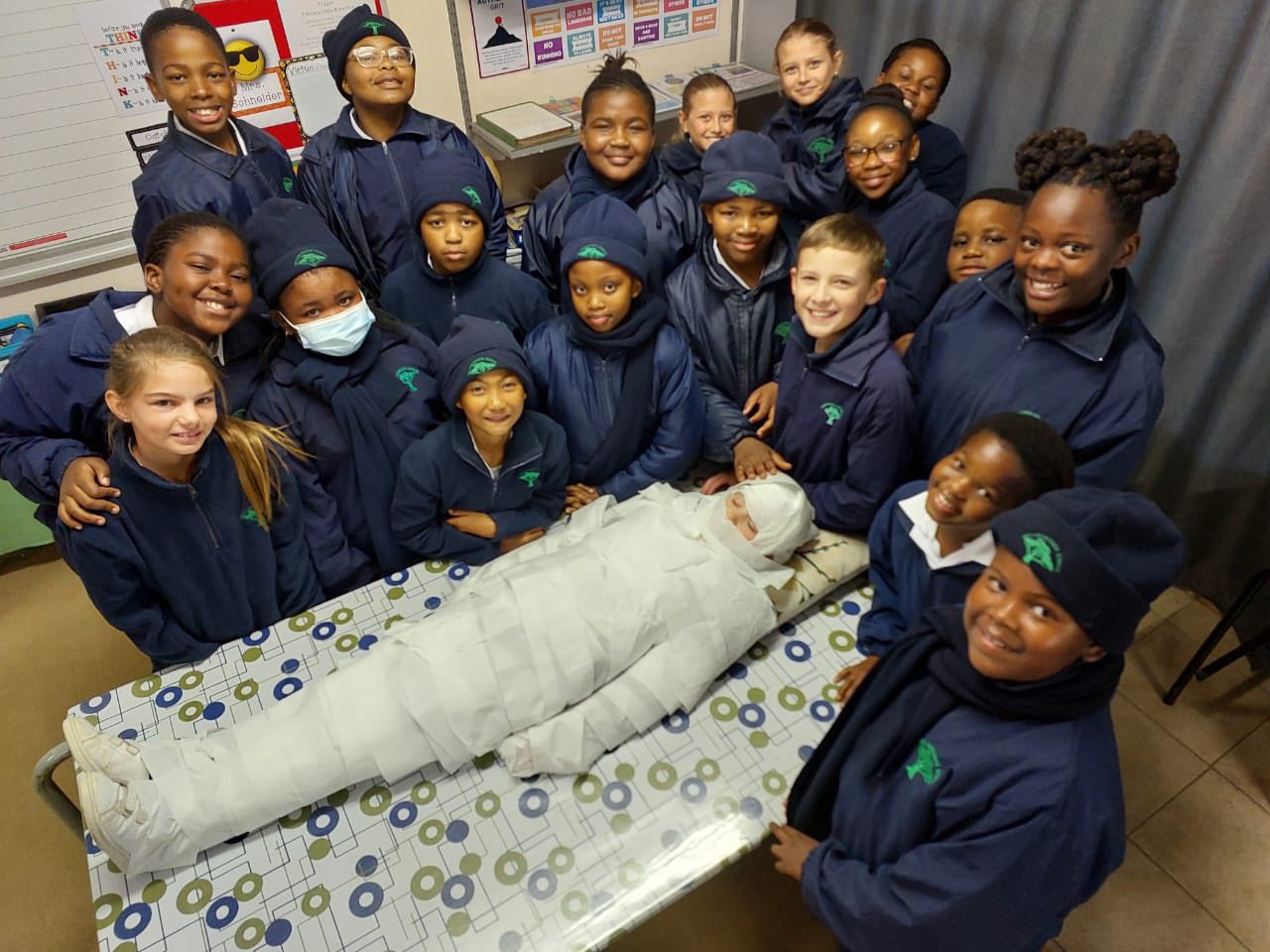 The Grade 4 and 5's got practical with the Egyptian embalming and mummification process.